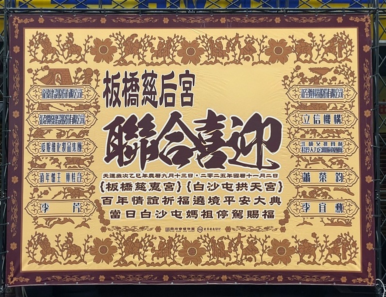 白沙屯拱天宮天上聖母將於 2025 年 11 月 1 日至 11 月 2 日(農曆九月十二、十三日)應邀參與 板橋慈惠宮百年會香盛典。